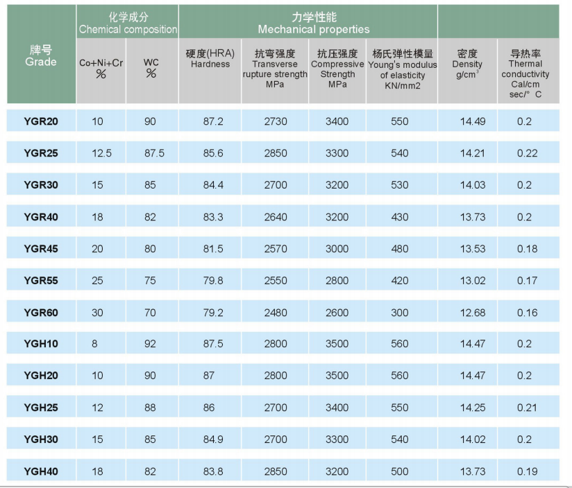 硬質(zhì)合金輥環(huán) 碳化鎢輥環(huán)牌號性能推薦表