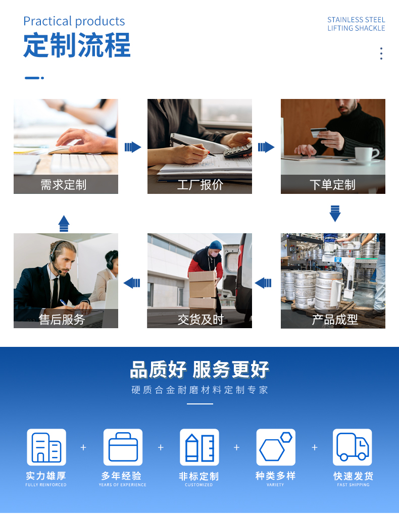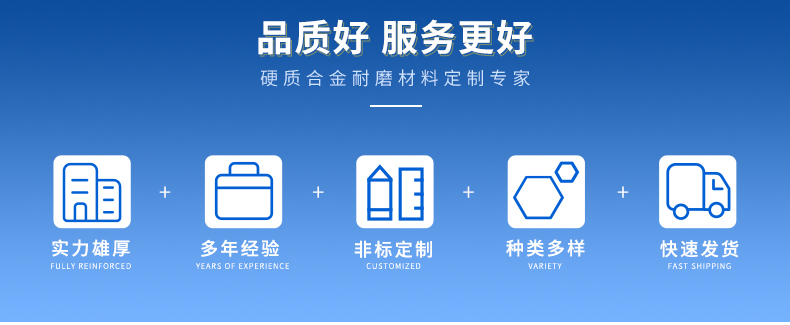 1.采用優(yōu)質(zhì)的硬質(zhì)合金原材料,利用冷壓、真空燒結(jié)工藝等先進(jìn)的成型技術(shù),生產(chǎn)制作各種復(fù)雜形狀的硬質(zhì)合金非標(biāo)異形產(chǎn)品,產(chǎn)品性能穩(wěn)定,質(zhì)量可靠。
